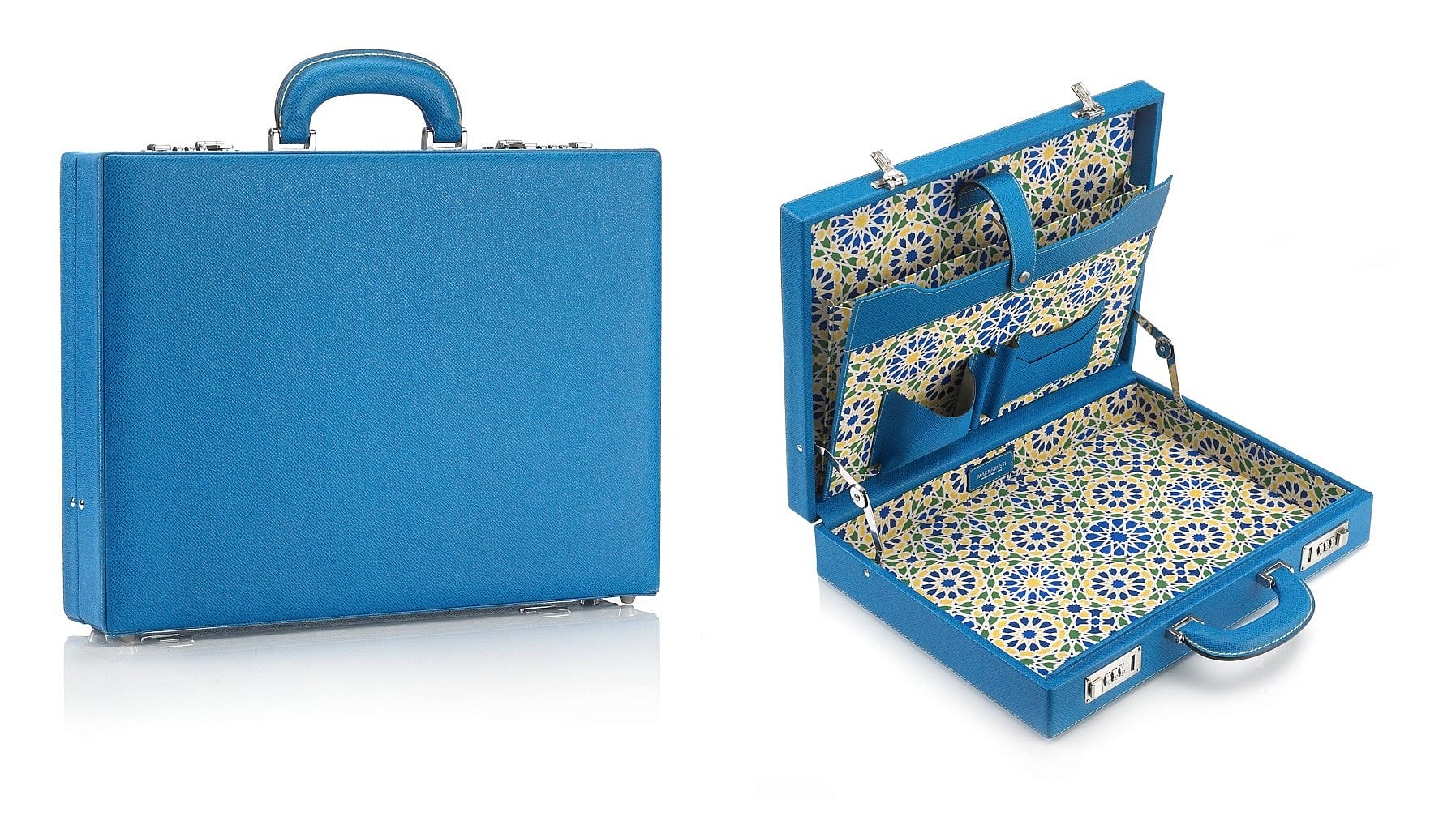 Although the exterior of MARK/GIUSTI’s ‘La Madraza’ attaché case (£745/RM4,051) remains firmly businesslike, its interior is as summery as donning a straw boater and being punted down a canal. It’s covered in blue or slightly more austere navy grained slalom leather – all done by hand, of course – but inside, it’s a different story. Flip it open and marvel at its internal pockets covered with patterned cotton sateen lining, inspired by intricate Byzantine-era floor mosaics and wall patterns.