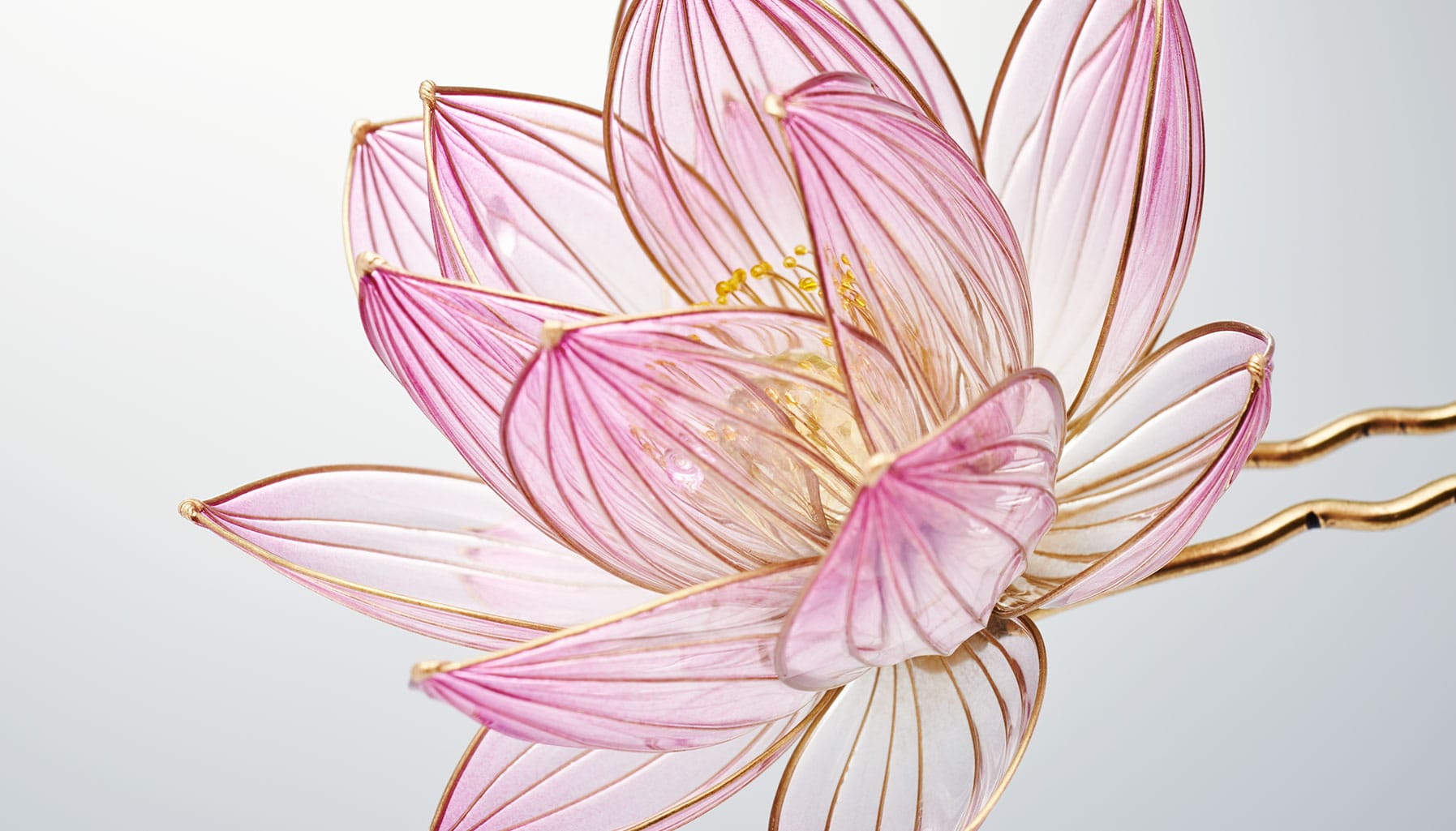 Sakae’s delicate creations must be purchased in Japan as the artist deems the hairpins too fragile for overseas shipping.