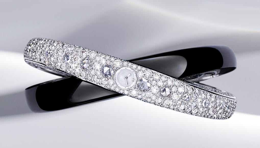 Rounding up this quintet of thoughtfully executed timepieces is the Cartier a l’infini. The same calibre 101 is installed as the beating heart of the timepiece. An almost Fibonacci-like cadence is applied on the alternation of diamonds and black lacquer creating a resplendent bracelet, precise to the nearest millimetre. “We are in the state of permanent evolution,” Rainero observes. “Our heritage to continuously invent leads to what Louis Cartier described in the 1930s as idees mere (French for ‘mother ideas’),” he says. “And from such ideas – such as the mystery clocks – we are able to open countless other doors to design and watchmaking innovation for decades and centuries to come.”