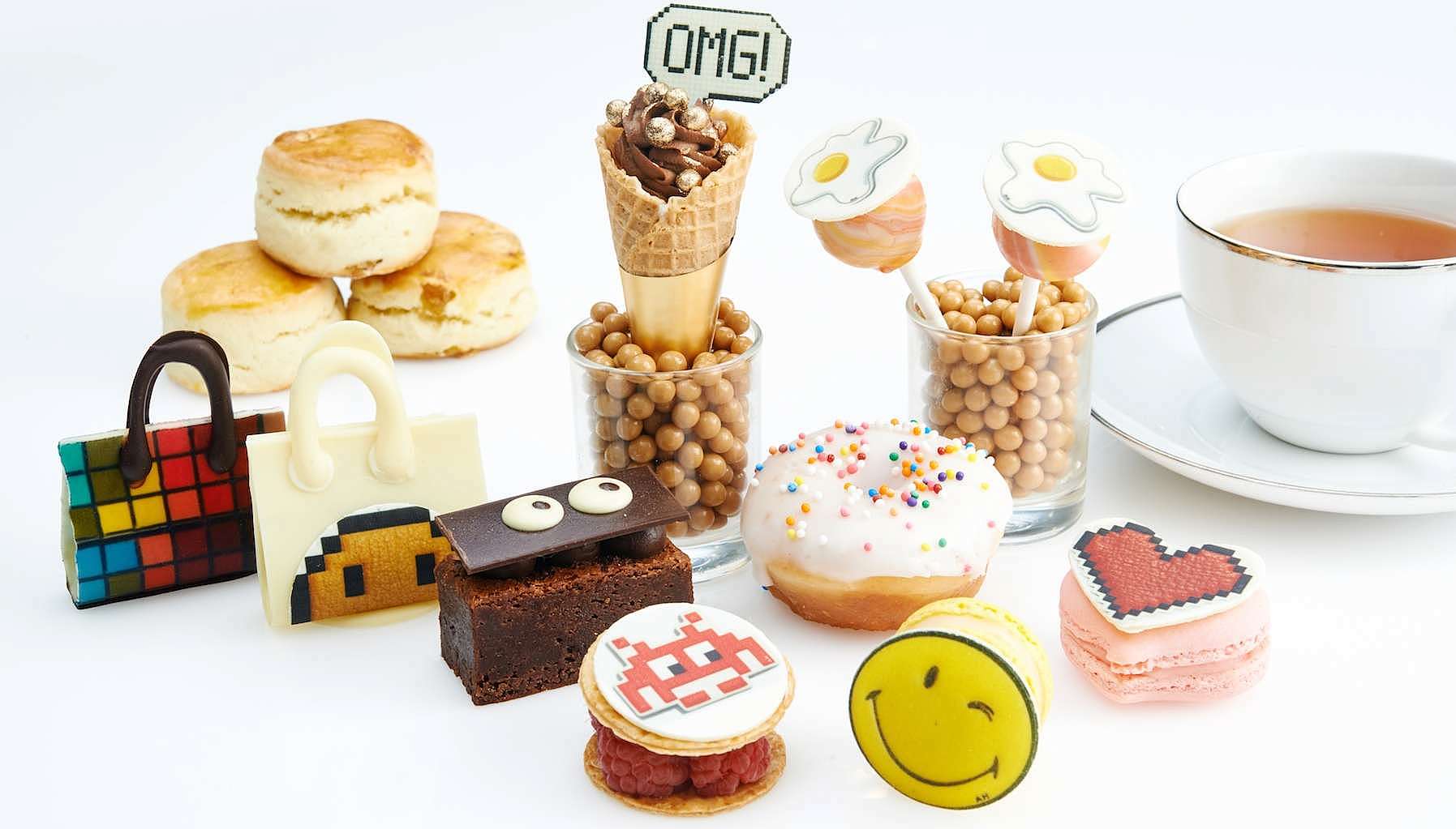Anthony Hoyle, the hotel’s new Executive Pastry Chef, wittily incorporated Anya Hindmarch’s signature graphics into sweet treats such as an ‘OMG!’ Black Forest waffle cone and an edible red velvet handbag painted with giant pixels. Canary-yellow lemon macaroons came stamped with Smileys, raspberry millefeuilles were topped with red alien invaders, while whipped chocolate ganache brownies bore googly eyes – just a few examples of the playful visuals on show.