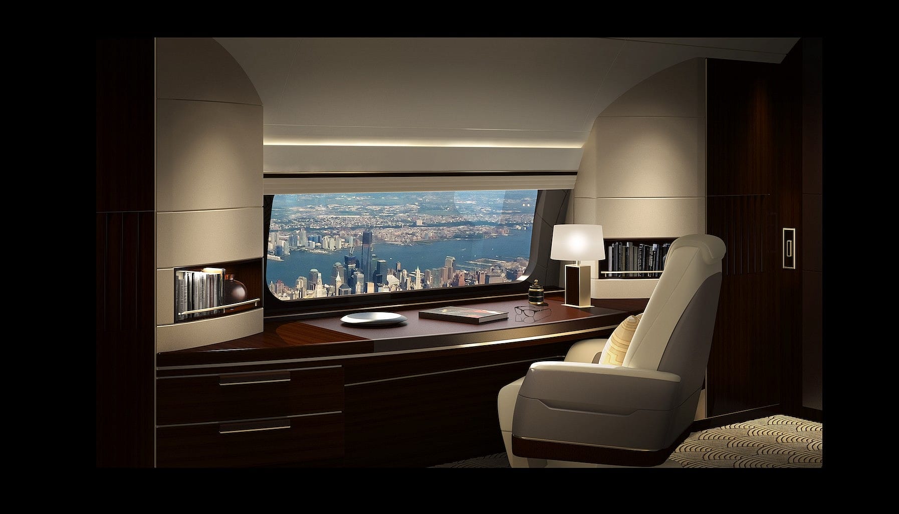 The SkyView Panoramic Window – the largest window available for any passenger jet – will offer Boeing Business Jet passengers an expanded view of the world below. At 138.3cm by 49.5cm, the SkyView is slightly more than three times wider than a standard window and about 40 percent taller. Boeing will be able to install as many as two pairs of the windows (each directly opposite the other) in a choice of locations aft of the wing.