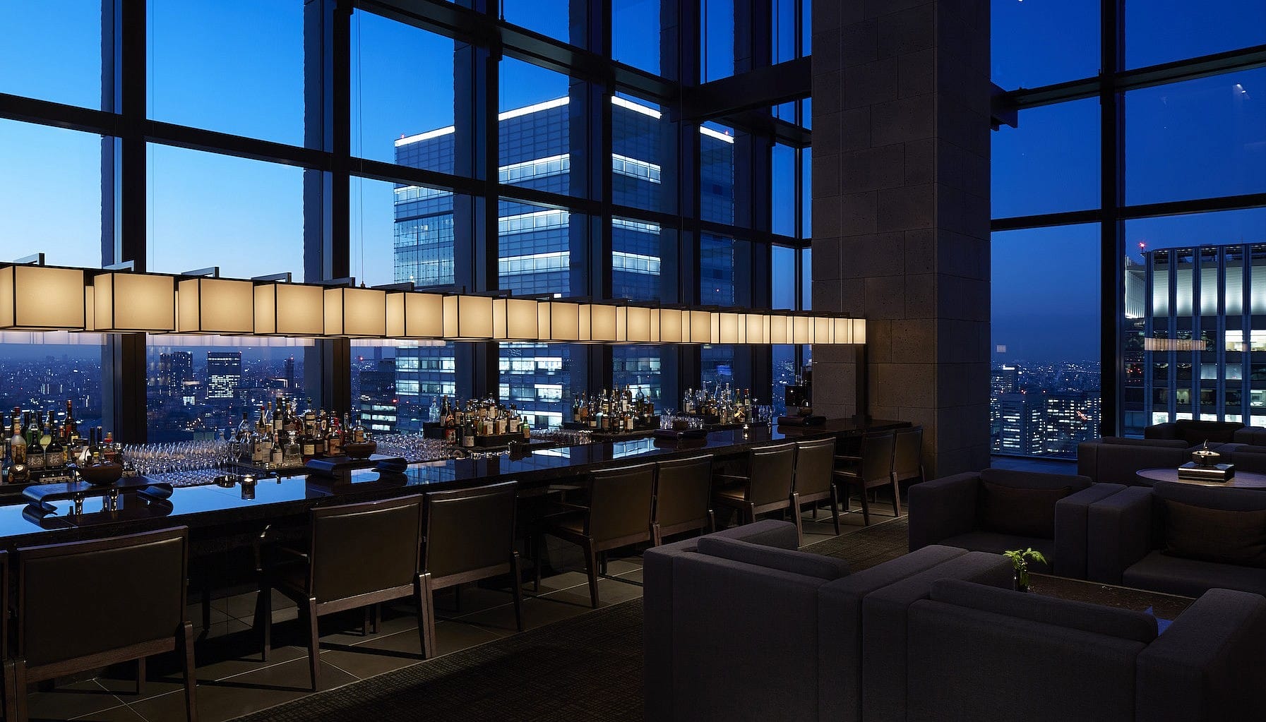 The spaciousness of the bar makes you forget that you’re in downtown Tokyo. Here, patrons are dressed to the nines and the twinkling lights of Shinjuku are visible through the floor-to-ceiling windows.