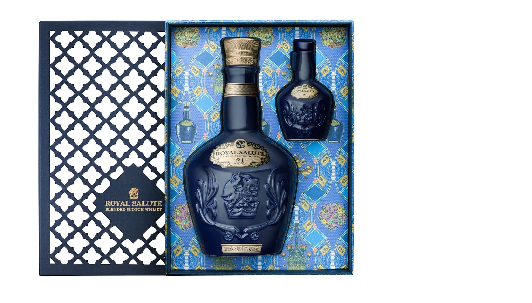 Nothing comes close to the grand presence of a Royal Salute. To celebrate the year-end festive season, the Royal Salute has collaborated with renowned wallpaper designer Angela Groundwater to create this limited edition set. This set pays homage to the legendary Regent’s Banquet from 1817 which claimed to have had 120 exotic dishes. On this limited edition, notable features on the Royal Salute 21 Year Old bottle are its unique laser cut-lid design, and an artisanal interior print with a combination of blue and gold shades. The bespoke gift pack also includes a similar miniature model.