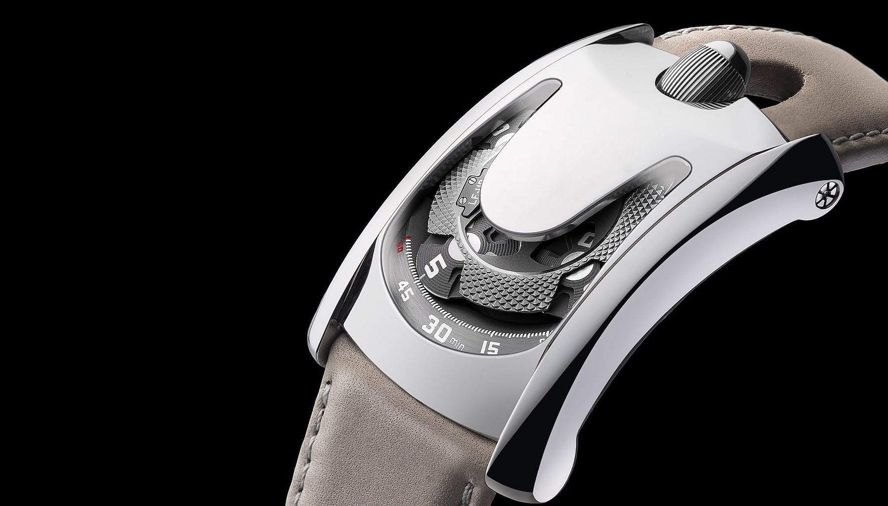 At first glance, it seems very much a URWERK creation — there is no dial, there are no hands. Instead, the watch uses one of URWERK’s signature movements: four numbered satellites that sweep successively across the minutes track. It is unconventional, but unquestionably intuitive and readable. Laurent Ferrier’s influence is evident in the restrained design and streamlined case, inspired by Ferrier’s love of automobiles. The case is made of a unique material that gave the watch its name — ARPAL+ is an alloy specially developed for this watch, and is tougher and more resistant