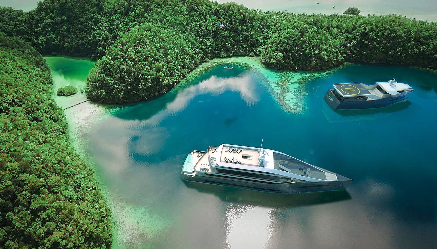 The concept employs the company’s hybrid LNG/Battery SAVe-CUBE system technology. The system employs twin 16V 4000 MTU diesel engines fueled by liquid nitrogen gas (LNG). Beyond providing power to the yacht’s carbon-fibre Azipull thrusters, the LNG-powered generators also charge the yacht’s battery banks for overnight stays. The electric power is a far cry from a superyacht’s typical diesel generator power, which not only creates unpleasant fumes, but also produces high levels of vibration across the yacht. This technology is not just some pipe dream: Skyler, a recent launch from Italian builder Benetti, is the first superyacht to use the carbon-fibre thrusters.