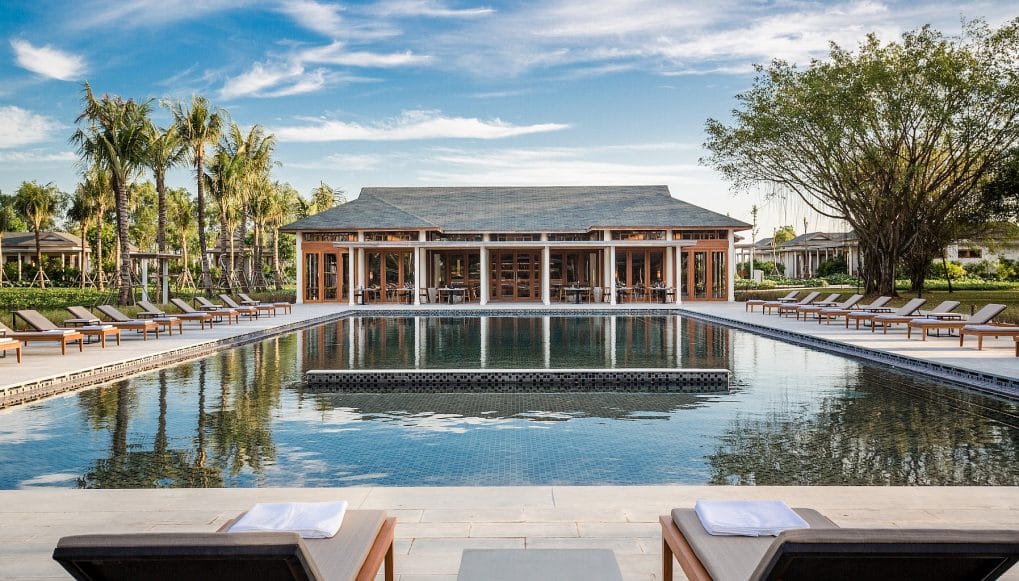 Low-slung and designed to resemble a colonial village by French-Canadian architect Pascal Trahan, the 60 villas are arranged around a central lake. With generous verandas and high-pitched roofs, the villas might seem invariantly luxurious at first glance, but subtle touches – woven rattan panels and lamps shaped like fisherman hats – anchor the dwellings with a sense of locale. Common buildings follow the same concept; from the Azerai Spa to the well-equipped gym, the spaces are quietly embellished only to a point where it adds character, but does not overwhelm. Personality, however, appears on the menu at the resort’s two restaurants, which serve faithful interpretations of Vietnamese cuisine – including the local favourite hot pot – as well as an international selection that includes mouth-watering grilled meats and fresh seafood.
