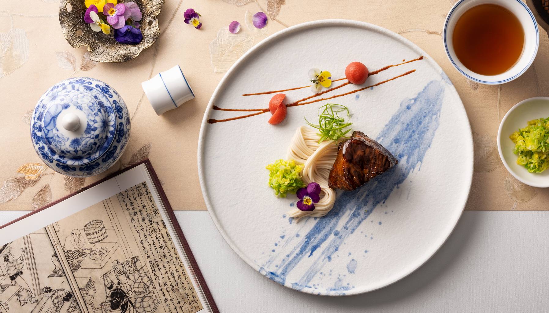 A vein of tradition still ran prominently through the meal: chef Kevin Ji of JW Marriott Hotel Shanghai at Tomorrow Square paid tribute to his city’s sea port heritage by adding a cod fishball to a rich golden pumpkin soup. Pungent soybean paste, homemade noodles, and braised Wagyu short ribs emphasised the heartiness of Beijing cuisine, just as a delicate osmanthus flower cheese tart served as an example of the light, subtle flavours that characterise Huangzhou desserts.
