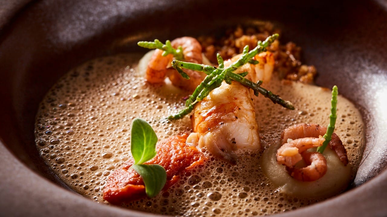 Such was the DC chef’s enthusiasm for T’Lur’s fish that he went a step further by wrapping sturgeon fillets in kombu for two days to tenderise its sinewy flesh, then serving it seared with homemade white miso, hazelnuts, and beurre blanc. It provided an interesting counterpoint against Onderbeke’s preceding course – langoustine with bumbu Bali, soft shell crab crumble, and samphire – illustrating each chef’s approach toward the nuances of creating a memorable seafood dish.