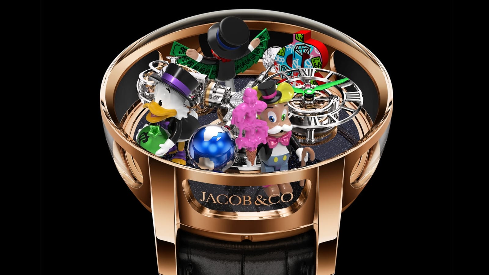 Jacob & Co. isn’t exactly known for subtlety. So it’s no surprise that its latest high-end watch, a subversive nod to one of the most popular board games in history, brings lots of colour and movement to the wrist. This week, the New York-based jeweller released a collaborative timepiece with renowned graffiti artist Alec Monopoly, known for his graphic sendups of the board game in his nom de plume. The exuberantly animated watch, called the Astronomia Alec Monopoly, features brightly renditions of the game’s central character, Mr. Monopoly, manifested as other pop culture icons and set off against a black dial decorated to look like a starry night sky. The watch is housed in an 18-karat gold case with a curved sapphire crystal dome and four windows on its side—allowing for a full view of the artistry inside.