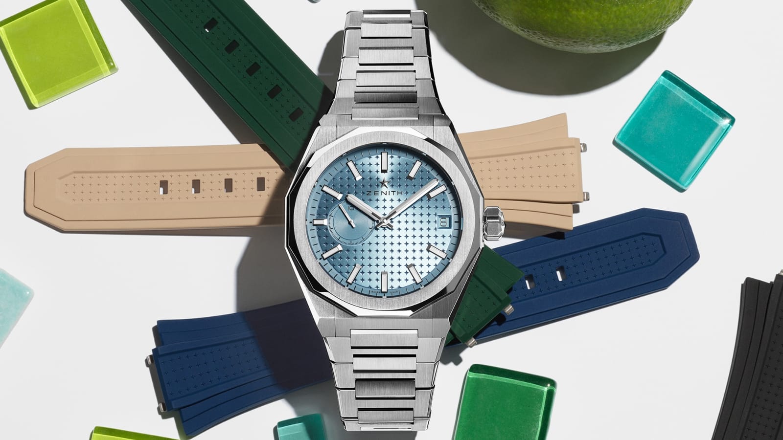 Zenith’s playful new ice blue Defy and strap collection are the perfect way to add a touch of summer to your wrist whether you’re enjoying a staycation or travel. The Defy Skyline 41 Ice Blue is available today exclusively in Zenith’s online boutique.