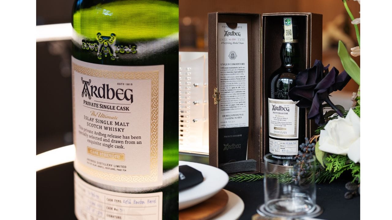 Cask 0911 caught his eye not because of the auspicious number—“I’m not a Porsche owner,” he points out wryly—but because of the tasting notes. Dr Bill Lumsden, Ardbeg’s legendary head of distilling and whisky creation, had observed an herbaceous and peppery note to the cask, something very different to Ardbeg’s usual direction. Tasting notes alone are not something that a whisky connoisseur wants to exclusively rely on—especially not when it comes to a cask that would produce about 179 bottles—but he had a gut feeling about this one that made it stand out amongst the selection of casks on offer. “They won’t release a cask that is not good enough, that’s for sure,” he had reasoned. “It’s just like—among all the A-list casks, which one do I want?” Cask number 0911 is a refill bourbon cask, aged for 28 years at the time of bottling, with its liquid at 41.5 per cent ABV. The tasting notes also highlight orchard fruit flavours and subtle, sweet smoke.