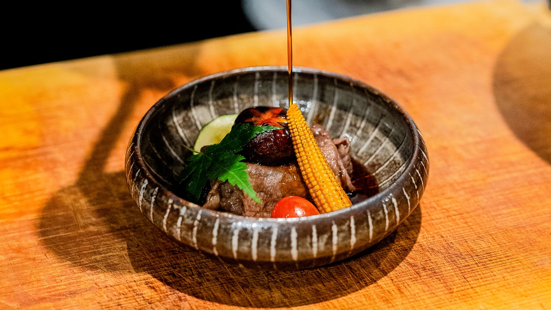 From Sushi Azabu, Chef Kenta brought with him the refined authenticity of Japanese cuisine, providing diners with a selection of fresh, seasonal sushi, before diving into the more expressive creations that truly showcase his creative flair. A crowd favourite—and a personal favourite of his as well—was the Chi Ayu Harumaki, a baby sweetfish spring roll wrapped with Japanese young corn. Chi-ayu is fleetingly available during the early summer only, with flesh that is sweeter and more tender than matured sweetfish. The dish is accompanied by a blend of monkfish liver and teriyaki sauce that balances bitterness and sweetness in harmony.