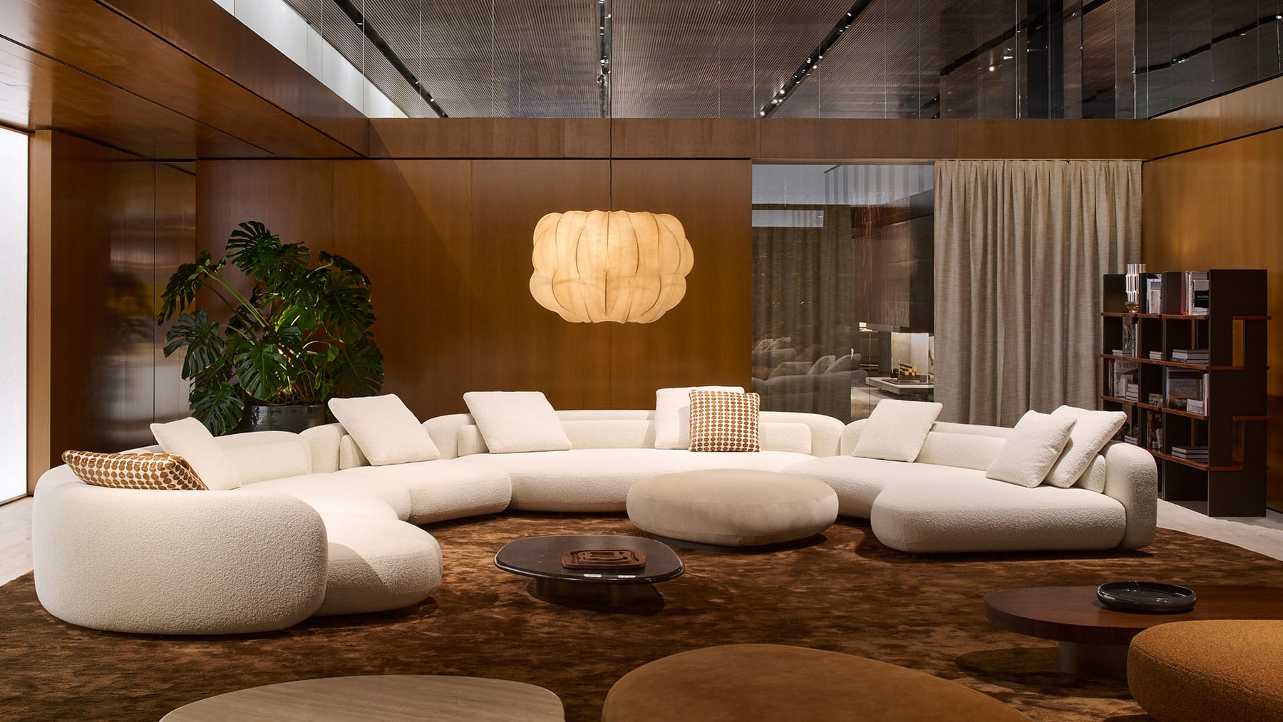 The Minotti Pavilion at this year’s Salone del Mobile.Milano unveiled the brand’s 2025 collection across five immersive settings, each demonstrating an inventive take on contemporary living. The pavilion’s spatial backdrop was enriched with cultural and artistic influences, featuring a selection of works from the Florentine art gallery Tornabuoni Arte. Curated by Minotti Studio, the concept spotlights the distinct design language of five different creators, reimagining the experience of modern indoor and outdoor spaces across residential and hospitality settings. Each backdrop introduced a new seating system: Bézier by Marcio Kogan / Studio MK27, Coupé by Giampiero Tagliaferri, Riley by Hannes Peer, Saki by Nendo, and Vivienne by GamFratesi.