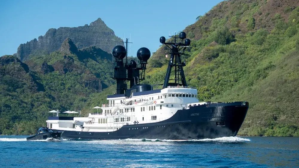 Built by Schichau-Unterweser, Arctic was originally an ice-class salvage tug but was converted by Australian billionaire Kerry Packer and relaunched in 1994. At that point, it was the largest converted explorer and one of the very first true expedition yachts on the seas. It cruised the globe for decades, setting a Guinness World Record for reaching the southernmost point ever navigated by a motor yacht.