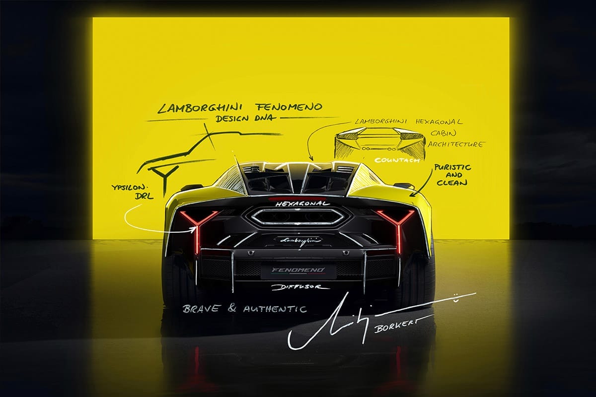“We give adrenaline a shape,” says Mitja Borkert, Lamborghini’s design director, regarding the Fenomeno.