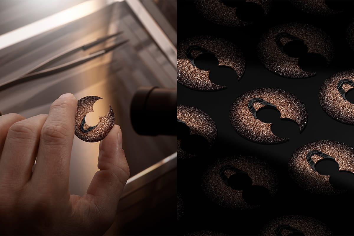 It is called Crystalium and, here, on the new Freak [X Crystalium] (RM198,000), it is the basis of the dial, which appears as a golden crystalline texture. It is, in fact, made up of crystals of ruthenium—a metal that is chemically similar to platinum—and formed by a cutting-edge vapour-deposition process that, indeed, builds these metal crystals. It lends itself as a unique, shimmering surface with a geological randomness. It is treated with a rose gold PVD finish to contrast the blacked-out mechanical and structural elements of the movement, as well as the black DLC titanium case, which measures 43mm in diameter.