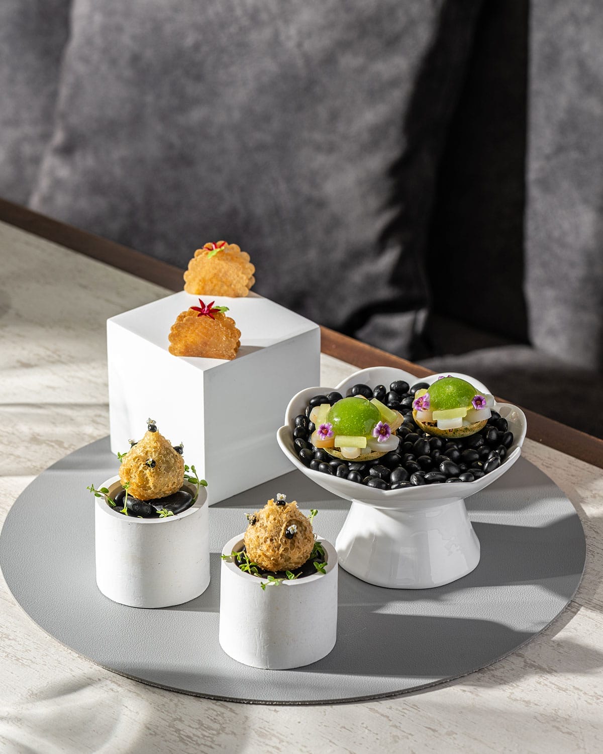 For dessert, guests have the option of choosing between Summer Breeze—a yuzu and mascarpone cheese parfait with apricot sorbet—and Texture of Chocolate—made with Saint-Domingue 70 per cent dark chocolate and jackfruit. The former wraps up the course with a graceful finish, sweet and satisfying. The latter is ever so adventurous, crafted for those who crave one last surprise before calling it a night.