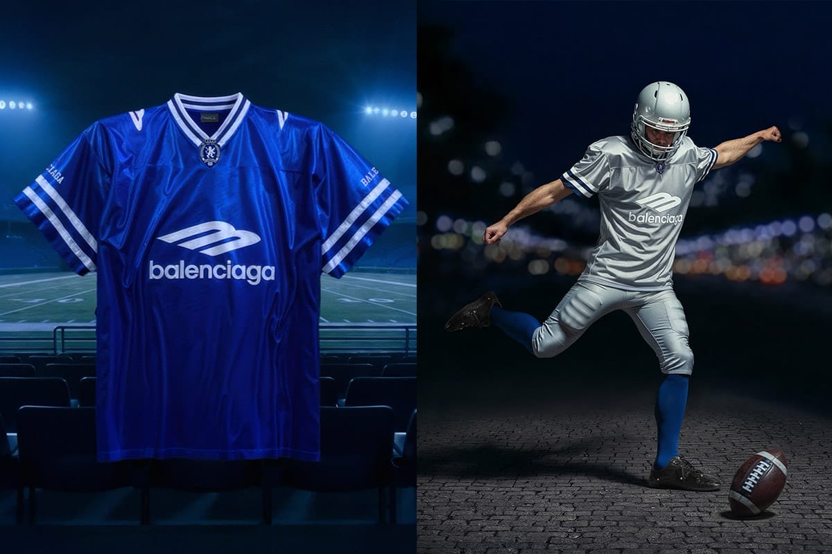 The luxury streetwear brand is drawing from American Football (not the football the rest of the world plays) for its latest collections of ready-to-wear and accessories. These Spring 2026 pieces marks the first time that Balenciaga pays tribute to the sport, as showcased in the exaggerated silhouettes, amplified builds, and over-the-top graphics. Highlights include shiny or matte jerseys, varsity hoodies, techno poplin tracksuits, drill caps, and more. The 3B sports icon and other Balenciaga signatures contribute towards the overall aesthetic, combining the best of the gridiron and the brand’s couture spirit.