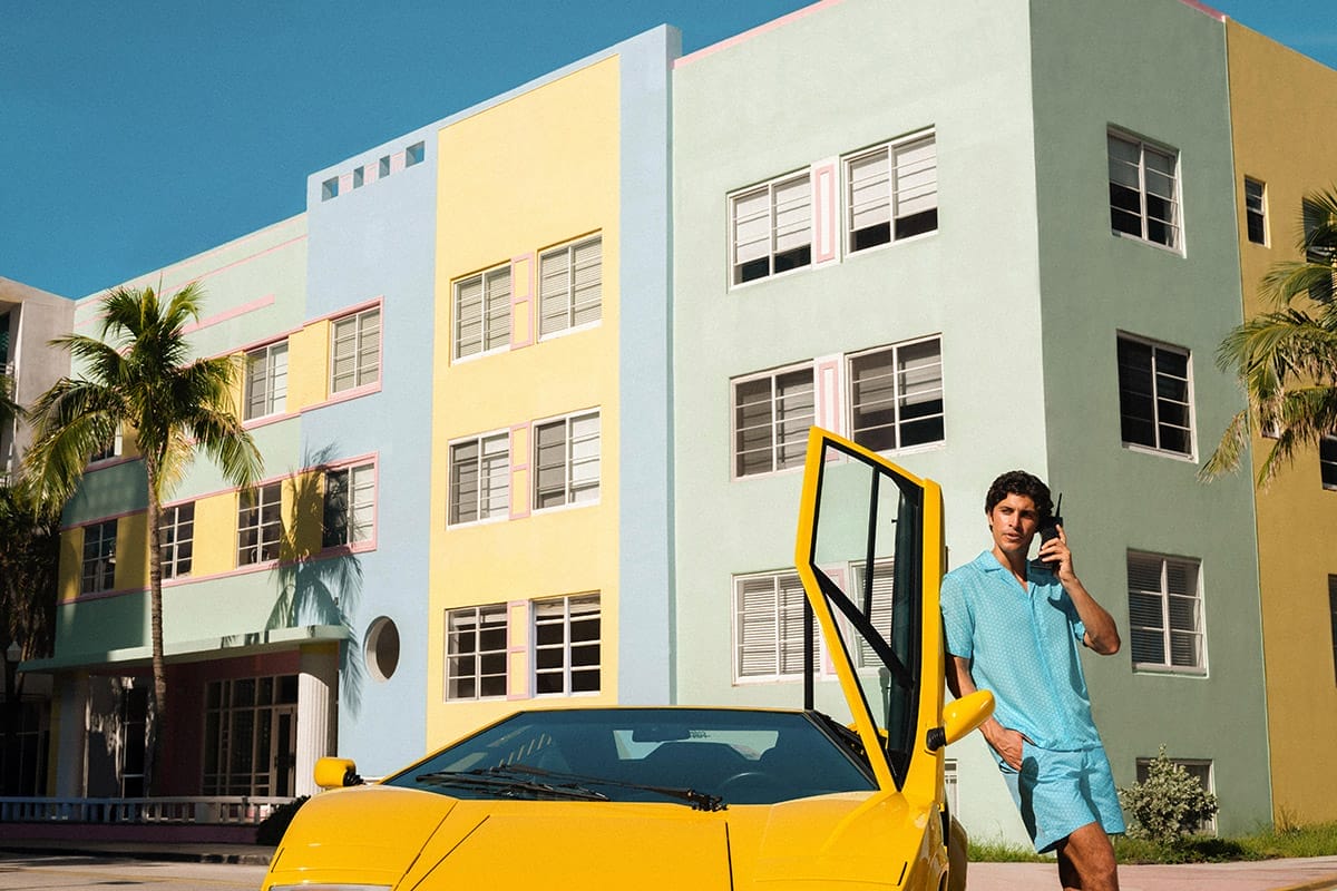 The vibrant collection celebrates the spirit of both brands, fusing high-performance heritage with contemporary style. Inspired by the visceral power of the Revuelto, Orlebar Brown formulates a collection with a palette taken straight from Lamborghini’s most eye-popping shades. Highlights from the collection include bright blue and green swim shorts with daring hexagonal prints, a towelling jacquard short and shirt set, silk resort shirts, rashguards, and a newly designed set of matching beach bags and towels.