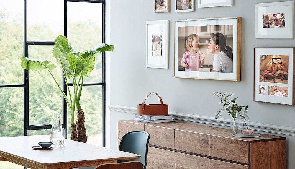 Ideal for smaller homes and apartments where real estate space is valuable, Béhar visited the world’s greatest museums and galleries to decide on the frame. Settling on a modern, streamlined border available in white, black and wood veneer, The Frame is designed to be wall-mounted.