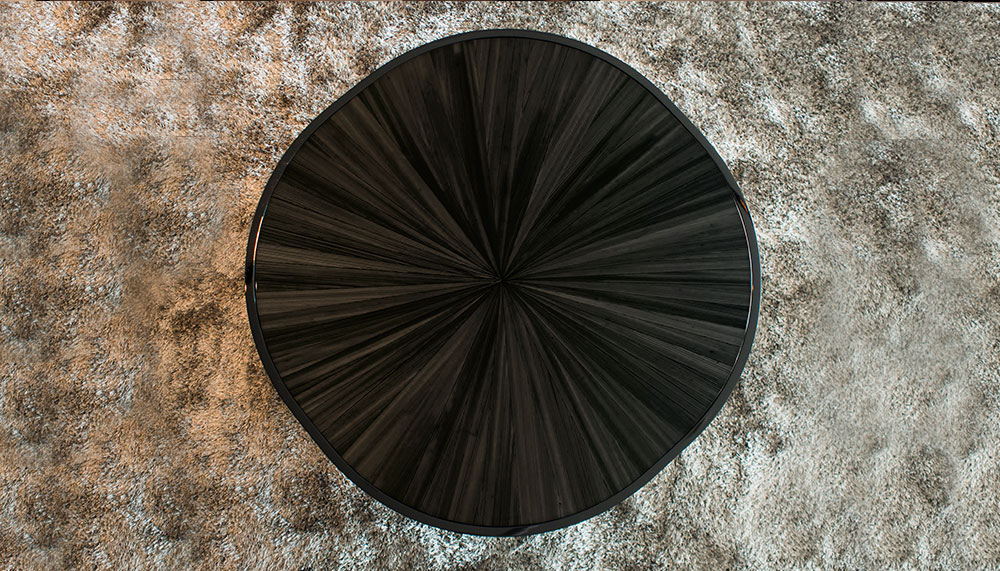 Iris table in black straw marquetry