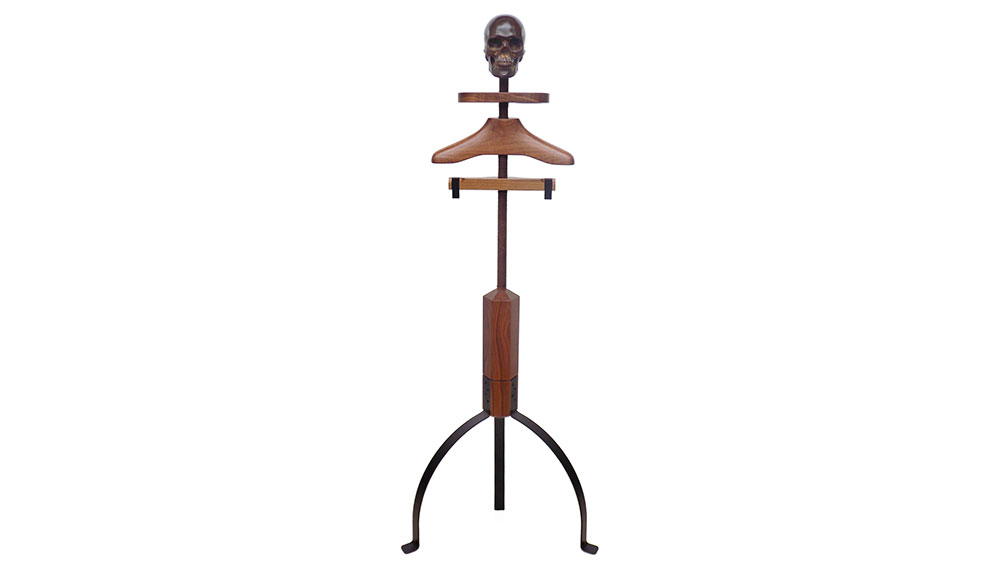 The Hatstand Valet (from £3,350, RM18,200) in oak or walnut will appeal to anyone with a slightly macabre, rock ’n’ roll sense of humour: a resin mould skull stands ready for you to rest your hat on. Pair it with a trouser bar, clip hanger and an accessory tray, and you’ve got yourself a faithful wardrobe guardian for life.