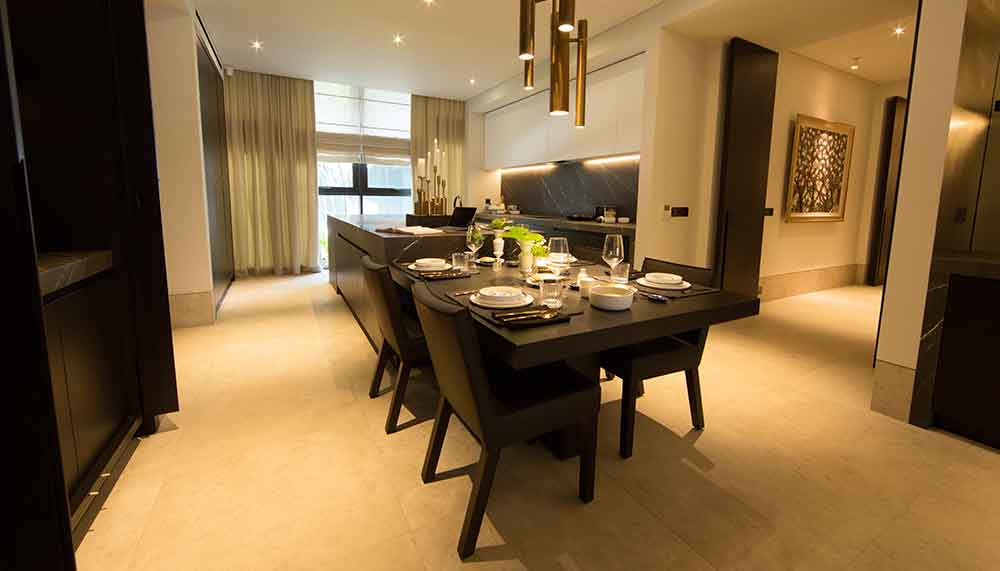 Cue the lavish interior designs, in which potential homeowners are offered a chance to personalise their units through a range of styling options by award-winning Amsterdam-based design studio Piet Boon. These choices include colour palettes for wall, floor and cabinet finishes, matched with Piet Boon-designed furnishings and cabinetry, optional Bang & Olufsen home entertainment systems and a dream range of European design brands from Miele’s microwaves and built-in fridge-freezer combinations to Minotti side tables and Baxter pouf chairs. Prospective owners may also specify biometric fire safes, smart home systems and CCTV packages as part of a hassle-free bespoke solution offered by Aira Residence.