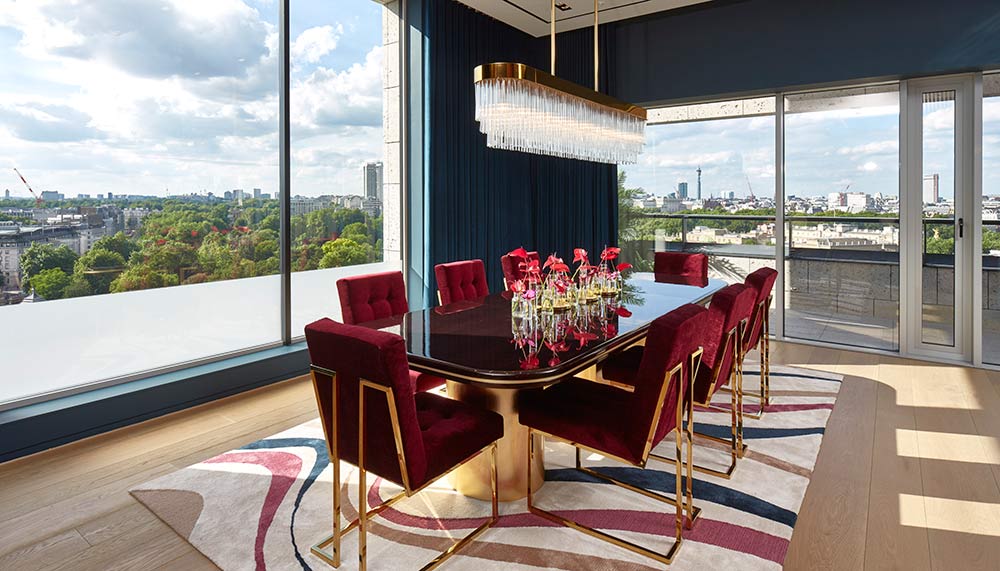 The unparalleled 360-degree panorama offered by the apartment is mirrored by its prime position in central London once on ground level. The 2.2-hectare estate of Nova South, Nova North and The Nova Building is a stone’s throw from Belgravia and within walking distance of Pimlico, Knightsbridge and Mayfair, allowing residents to keep their thumbs on the city’s pulse.
