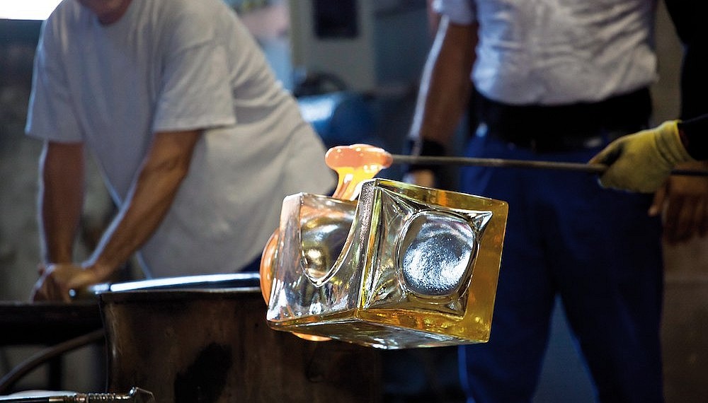 Glass-blowing is a labour-intensive art. Venini has been at it since 1921, pulling from traditions and techniques dating back to the 13th century. Black Belt was an aesthetic and technical challenge, which meant Venini deployed their master craftsman for the series. To achieve the layered effect of colour and clarity, artisans had to lean hard on a technique known as “a sbruffo” (which means “puffed”) paired with a process called “sommerso” (or “submerged”), before the last, chunky passage of black glass bands — like the auteur’s leather calling card — were pulled and placed on the hot surface of each vessel.