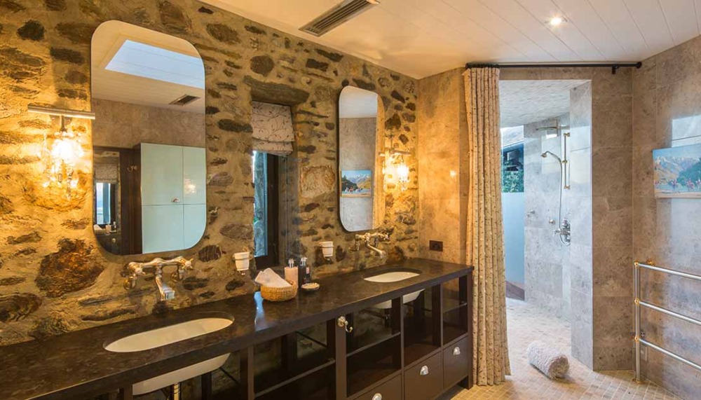 For ultimate comfort and privacy, book the Blanket Bay Villa. It’s located away from the rest of the property, and feels more like a private residence, making it ideal for a party of eight. The four suites are all equal in size, and is bathed in soothing cream shades that contrast beautifully with dark wooden accents and stacked stone walls.