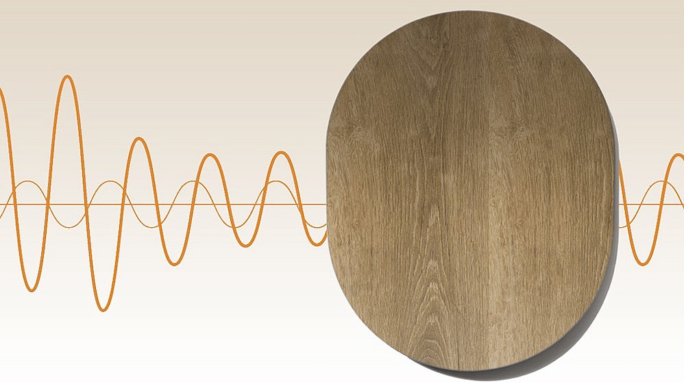 Resembling a minimalist wall sculpture, the Surface consists of a thin, curved panel of oak wood with transducers affixed to its rear side. When activated, these transducers take the incoming audio signal and transfers them into physical movements that vibrate the wood panel, thereby producing audible sound waves.