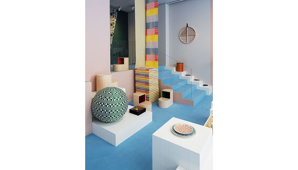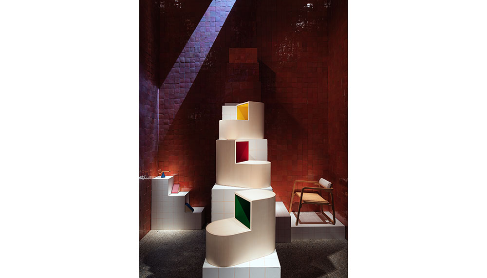 Artistic directors Charlotte Macaux Perelman and Alexis Fabry oversaw the creation of seven vibrantly hued pavilions for the launch in April, which was held in Milan’s La Permanente museum. Clad in 150,000 textured zellige tiles specially imported from Morocco, each towering structure showcased a range of objects, such as accessories, textiles and wallpapers.