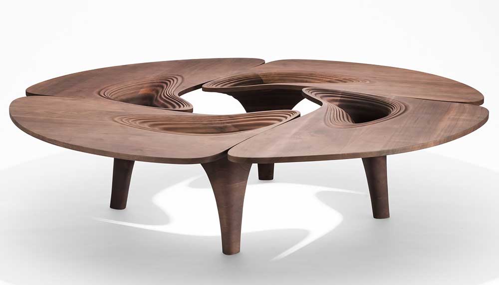 Six months after the unexpected passing of Zaha Hadid, the Iraqi-born British architect and the first woman to receive the acclaimed Pritzker Architecture Prize is still dazzling design enthusiasts all over the world. A visionary in her own right, Hadid had a long working relationship (and a close friendship) with London gallerist David Gill, creating her first home collection to be shown in his eponymous London art gallery in 2007. It is here that her final collection of furnishings entitled UltraStellar was unveiled, featuring a coffee table, dining table, and two chairs (all made from walnut) as well as a futuristic metal and glass chandelier.