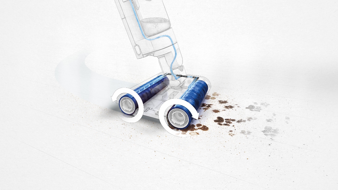 Wet spillages of any consistency are no problem for the WashG1. With just one pass, the dirt and liquid will vanish entirely. This also applies to dried-on stains that have been there for days. However, some tough stains might need several passes for the marks to go away, and that’s also when the ‘Max’ mode comes in handy. “The ‘Max’ mode is a result of our discovery,” Ooi says. “Adding more water is the most effective way to address ingrained spillages. Also, I would say that this mode is quieter than the typical vacuum cleaner in terms of noise levels.”