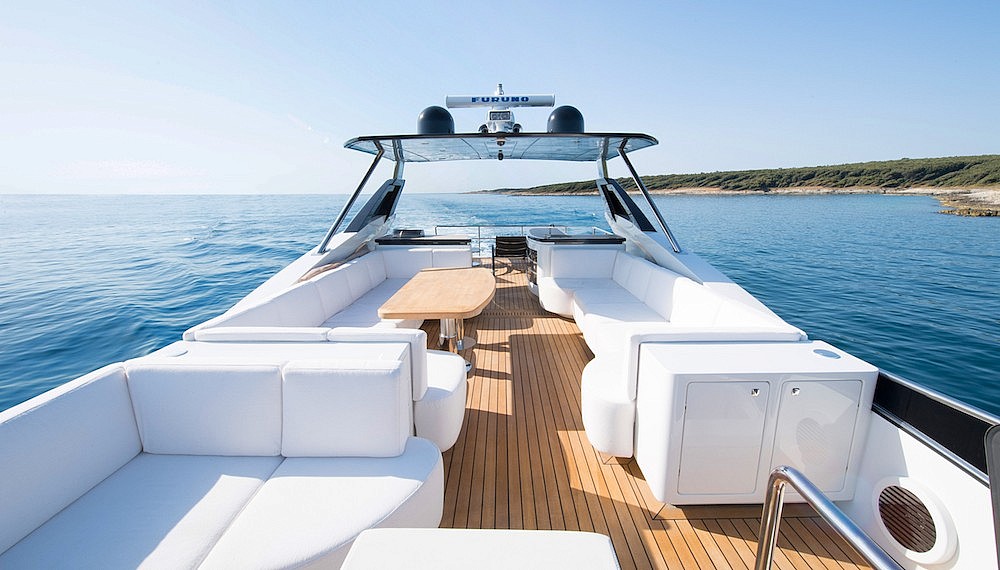 This breathtaking 76-foot flybridge yacht from Swiss-based Adler Yacht owes its design to Nuvolari-Lenard, the Venitian studio with a portfolio of superyacht expertise. The first carbon fibre yacht in its category, cabin accommodation allows for between six and ten guests while propulsion is via a diesel-electric hybrid system of twin Caterpillar engines and 100kW electric motors.