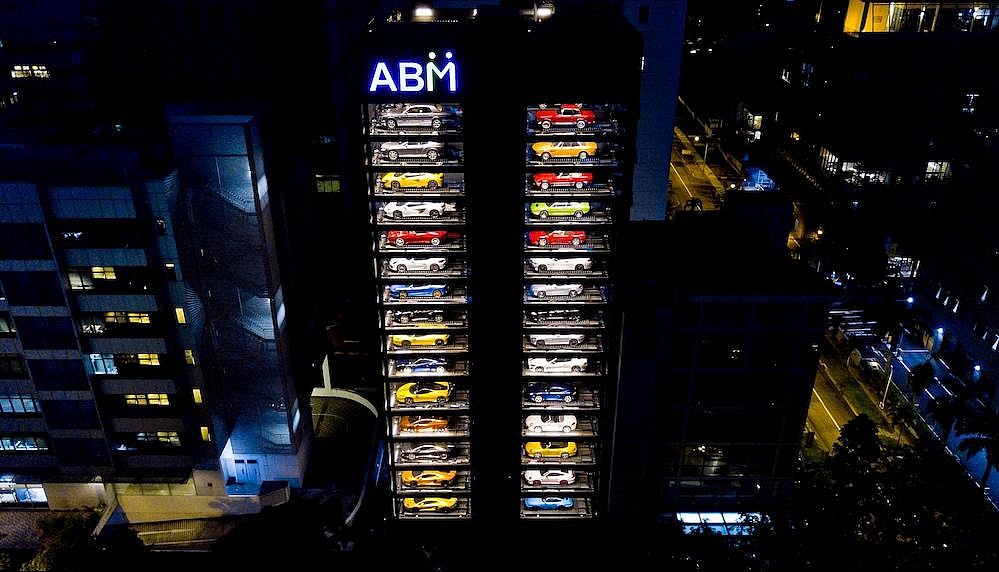 If you saw a picture of it, might have thought it was a nicely displayed model car collection — dozens of expensive and rare cars arrayed in columns of display cases. But in real life, it stands 15 stories high, and each of the 60 cars on display are very much full-sized and in pristine working condition.