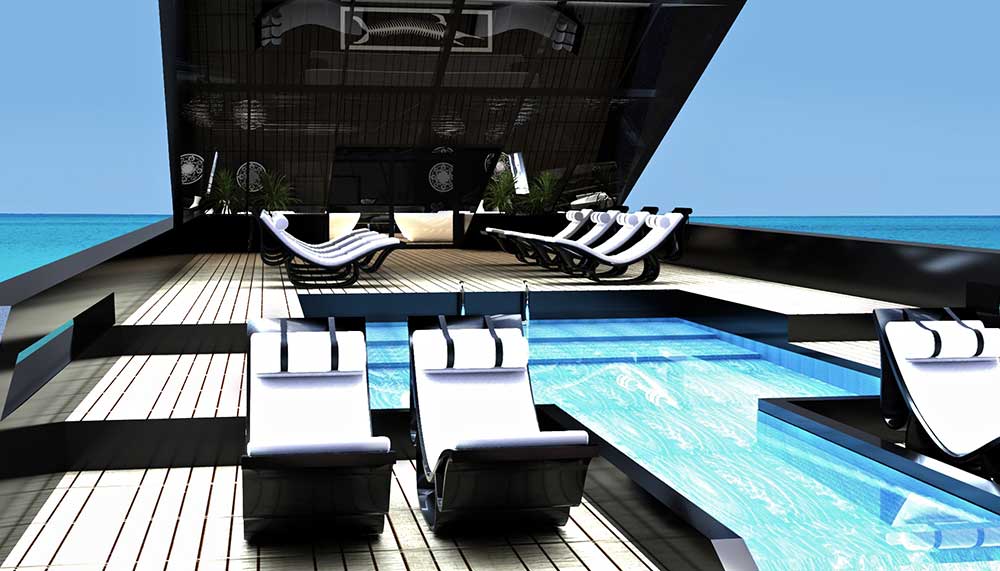 Rarely is a yacht described as dramatic, yet that is the perfect adjective for the Black Swan Superyacht Concept. Designed by Turkish designer Timur Bozca as ‘the powerful image of an arrow’, the Black Swan is a formidable torpedo of a superyacht that is guaranteed to cut a striking figure at sea or at marina. Midnight black and menacing, it sails to the mental soundtrack of Darth Vader’s March from Star Wars.