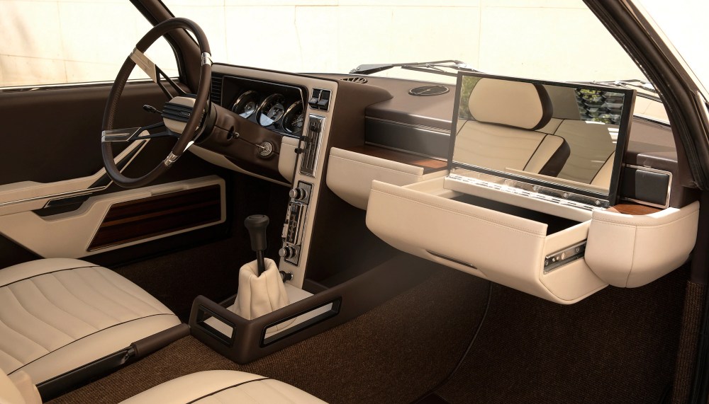 The original Garmisch concept was one that avoided curved surfaces, a tenet of automotive design throughout the 60s, especially in Italian vehicles. The Garmisch’s boxy, angular aesthetic was a harbinger of designing cars around ease of production versus outward appearance. The design team was able to recreate vital details of the car, including the light champagne metallic paint, and sideways radio, and the vanity mirror in dashboard for the passenger. The new Garmisch was built by adroit tradesman in Turin, Italy, just as the original was.