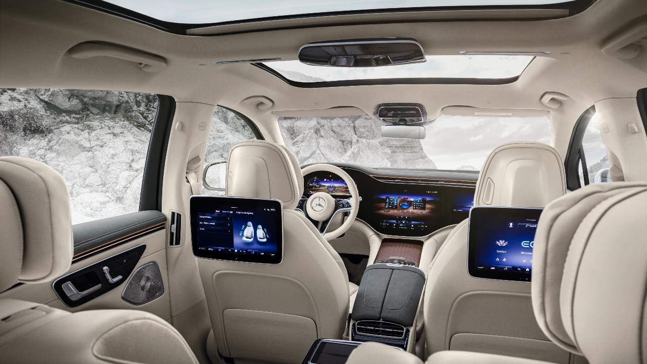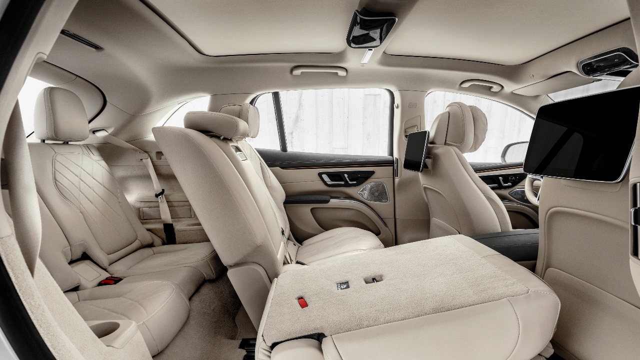 In terms of space, the EQS SUV is as cavernous as its exterior proportions (5,125mm long, 1,959mm wide, and 1,718mm tall) suggest. It shares the long wheelbase of the EQS but sits more than 20cm higher. It has a third row of seats for up to a total of seven passengers. With all the seats folded down—a manual operation for the third row but electrically for the second row—the total cargo space is an impressive 2,100l. The second-row seats are no afterthought in terms of comfort, as they are electrically adjustable for comfort and come with two 11.6in touchscreens for entertainment and a full-fledged Android tablet in the centre armrest.