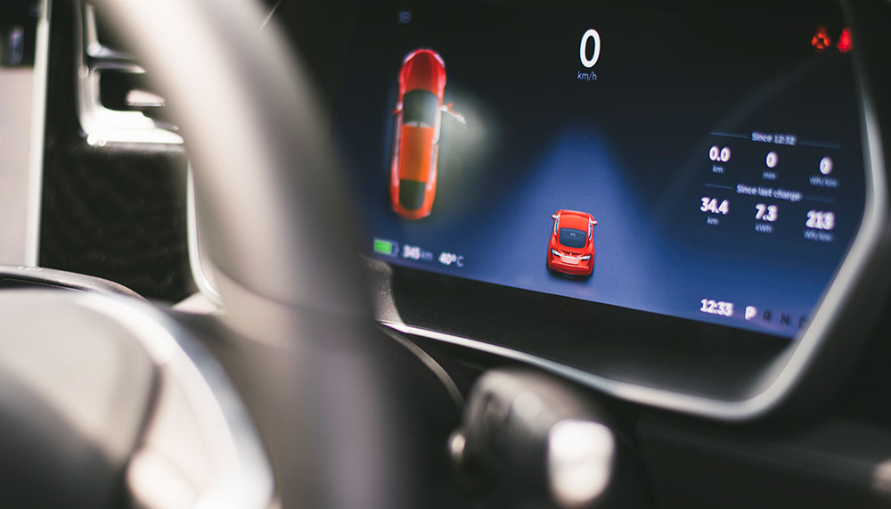 The wheels — all four of them, in the case of this all-wheel drive D designated variant — are directly driven by motors. In the absence of a gearbox, the familiar feeling of revs building and dropping as the gears shift is gone, but not missed. With the Tesla’s competitors finding increasingly ingenious ways of shortening shift times and dulling the torque drop-off that comes with them, this is as silky smooth as forward progress gets. A little surreal at first, but perhaps not as alien as the switchable regenerative braking which mimics the effect of depressing the brakes upon simply releasing the throttle. This takes some adapting but aids in adding precious mileage to the Tesla’s range.