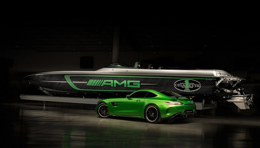 The “beginning” was 10 years ago when Cigarette and Mercedes decided to do joint marketing presentations. That evolved into a formal design agreement where Wagener and his team, working with Cigarette president Skip Braver and his team, designed a new AMG boat each year. The collaboration started in 2010 with the SLS AMG, inspired by the Mercedes-Benz car of the same name, and progressed to last year’s Cigarette Racing Marauder AMG Monaco, which debuted at the Monaco Grand Prix.