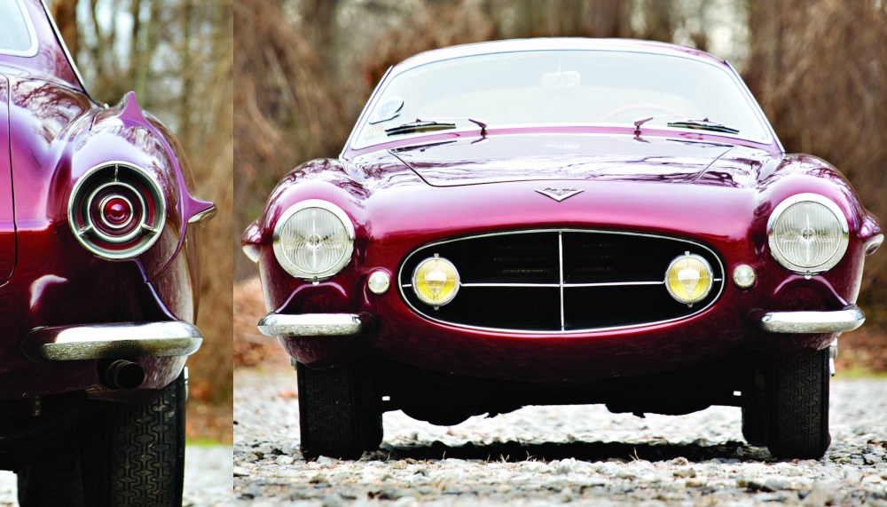 The most ambitious Fiat was the 8V—shorthand for Otto Vu—and refers to Fiat’s 1,996 cc, overhead-valve, alloy V-8 engine that made a whopping 113 hp. The power plant for the most exclusive Fiat was initially designed for a luxury sedan that never saw production. But a small run of 114 8Vs was made from 1952 to 1954, most of which were designed by Fiat’s own special body department, as well as coachbuilders Vignale and Zagato. One variant—the 8V Supersonic created by Ghia stylist Giovanni Savonuzzi—showcased Jet-Age fantasy and the era’s most aerodynamic styling. Ghia was established by Giacinto Ghia in 1915 and was at the height of its fame during Savonuzzi’s tenure in the mid-1950s working with American manufacturers, especially Chrysler designer Virgil Exner, giving Americans a taste for Italian automotive style.