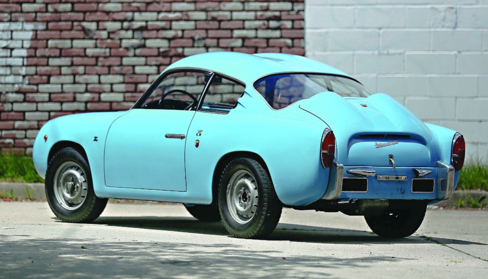 The “giant killers” for which Abarth is known were purpose-built racers, like this Fiat-Abarth 750 GT. At less than 1,200 pounds, the car was ably—if modestly—powered by a 43 hp, 747 cc Fiat inline-4 engine. Its featherweight Zagato bodywork is key to a performance-to-weight ratio that made it highly competitive in its class.