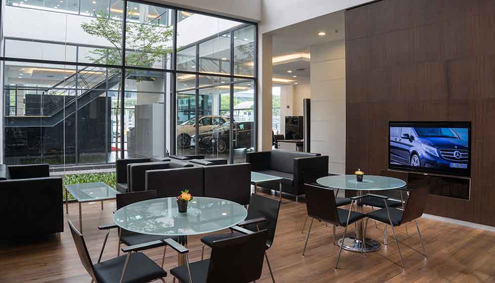 The showroom is an RM16 million multi-floor affair complete with centre courtyard and café, displaying also Mercedes-Benz lifestyle accessories and apparel. On aftersales care, vehicle door-to-door delivery services are offered for customers within a 30km radius alongside after-hours self-drop off.