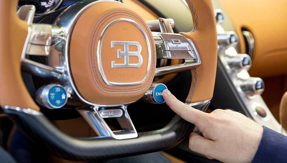 Personalising a Chiron requires a thorough – and potentially stressful – consideration of multiple exterior colour combinations, wheel choices, and interior trims, covering everything from headliner and seat styles to steering wheel stitching and brake caliper hue. Bugatti’s designers oblige with generous suggestions and insights, offering physical samples to complement the high-resolution renderings projected on a big screen. But ultimately, despite subtly directed hints and diplomatically delivered nudges, the choice ultimately falls upon the customer. Anticipation must also become part of the equation; the average wait for a Chiron is about a year and a half.