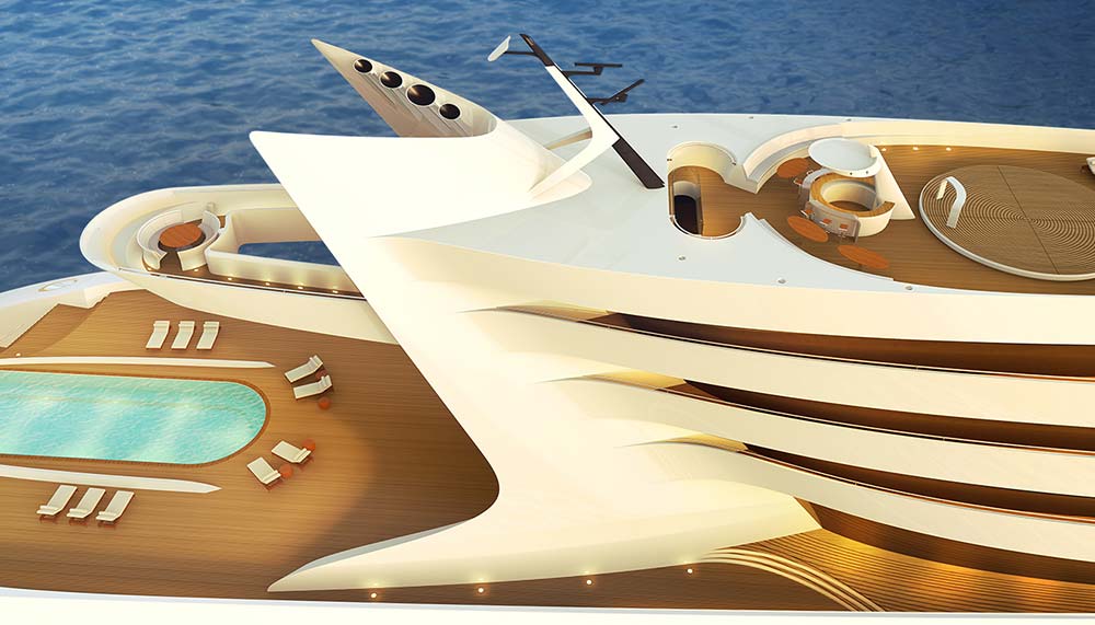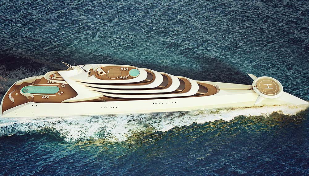 Milan-based HBD Studios recently debuted its L’Amage superyacht concept at the Monaco Yacht Show. If built today, the 623-footer (190m) would be one of the largest yachts in the world, though still more than 100 feet (30m) shorter than the largest, Triple Deuce – a 728-foot (221m) stunner scheduled to be completed in 2018.