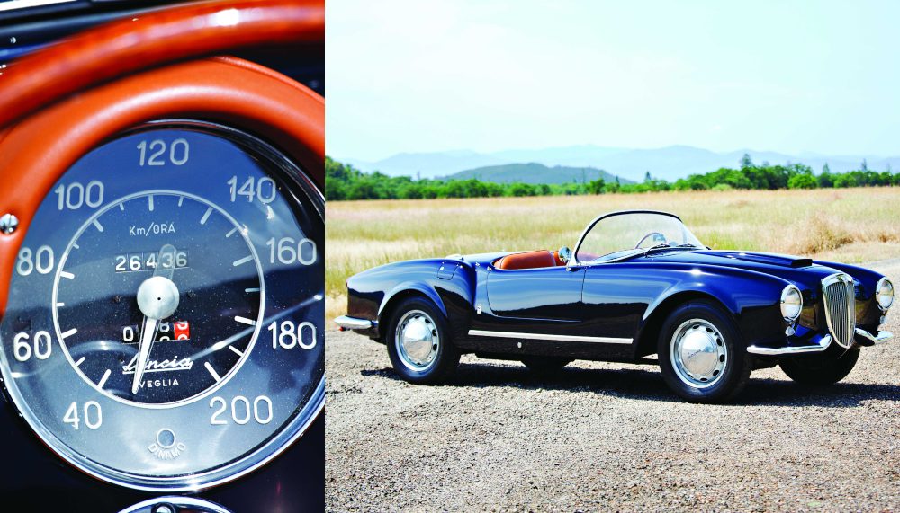 One of the country’s most beloved brands was Lancia, founded in 1906 by Vincenzo Lancia, the inventor of independent front suspension and a host of other important engineering firsts. Lancias have always been special cars, possessing impressive technical advancements, exceptional build quality and, often, unsurpassed beauty. The Aurelia coupes played a major role in motorsports throughout the 1950s, but the Aurelia B24 was the ultimate combination of engineering and design and was the most desirable road-going Lancia sports car of the time. Just 240 Spiders were made from 1954 to 1955, followed by 521 convertibles from 1956 to 1957. The former is the most collectible, with a simple wrap-around windshield and more minimalist appointments.