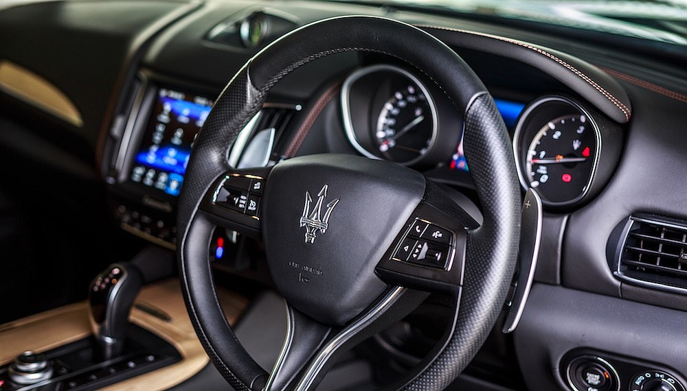 On the move, the practicality of its SUV bodystyle is perfectly matched by the powertrain pairing available for the local market. A torquey 3.0-litre turbodiesel V6 – good for 275hp and 600Nm – links to an eight speed automatic, making for accomplished in-gear acceleration and serene high-speed cruising at low engine speeds. For when the aforementioned gale force urgency is required, Skyhook adaptive dampers complement the balanced weight distribution for surprising athleticism — especially in Sport mode. And yet, with torque-vectoring all-wheel drive and five selectable dynamic ride heights, Maserati claims off-road abilities are not compromised.