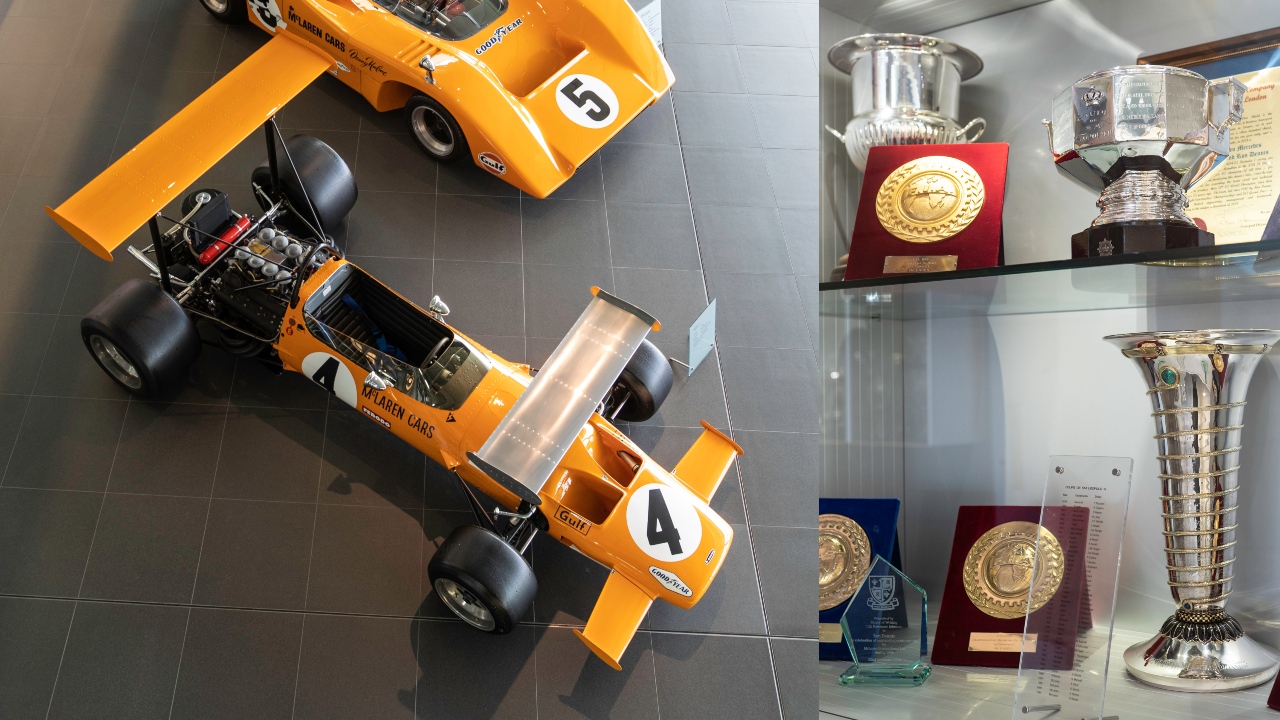 In the McLaren complex, there is a solitary non-McLaren car, one which occupies a prime position in the Broadway. It is a red 1929 Austin 7 Ulster, heavily modified—the suspension is lowered, and the fenders, doors and windscreen have been removed. These modifications were made by a then-15-year-old New Zealander named Bruce McLaren, who worked on it along with his father. As the story goes, they acquired the Austin as an entrepreneurial project, with the intent to sell it afterwards. Instead, McLaren drove it to his first racing victory at a local hillclimb in 1952. The trophy for that race is a tiny, palm-sized thing, is currently displayed on one of the many shelves of the Broadway. It looks comical next to a towering, elaborate F1 trophy—but there it sits.