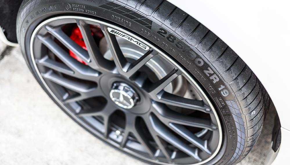 The latter is offered in two colour schemes, one with matte grey stripes over a choice of exterior colours while the other mirrors Mercedes-Benz’s DTM racer with yellow stripes over matte grey. The DTM homage, specifically, presents a staggered rim setup of 19 inches fore and 20 inches aft.